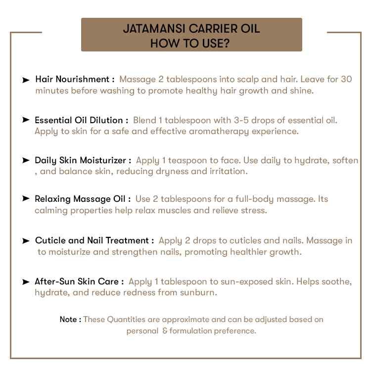 Widely used in ayurvedic formulations, perfumery, skincare, meditation blends, and luxury aromatherapy, Jatamansi Oil is treasured for its grounding and calming effects.