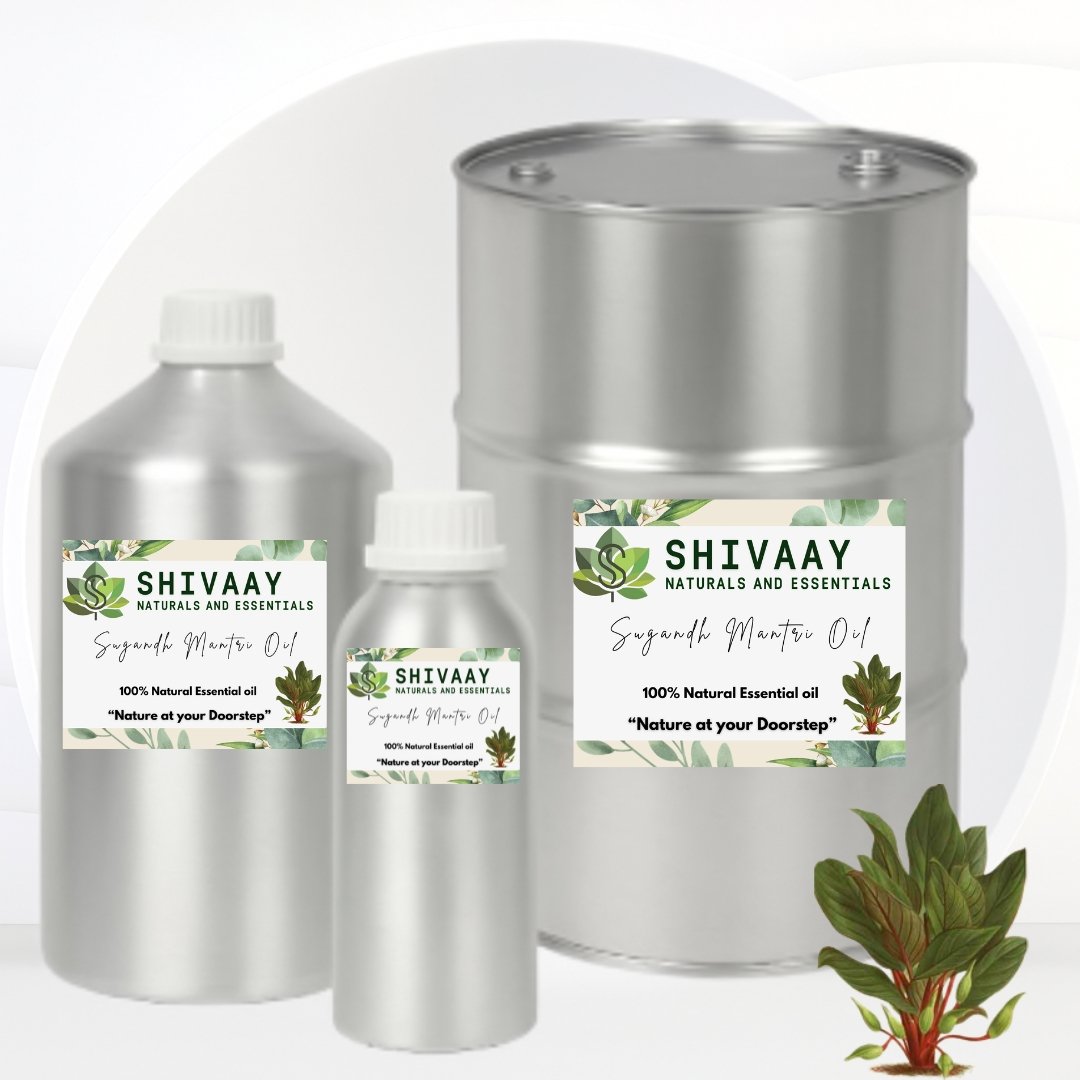 Shivaay Naturals and Essentials offers high-quality Sugandh Mantri Oil, steam distilled from the roots of Homalomena aromatica. Known for its rich, earthy, woody, and slightly spicy aroma, Sugandh Mantri Essential Oil is widely used in perfumery, incense manufacturing, aromatherapy, cosmetics, and natural wellness formulations.