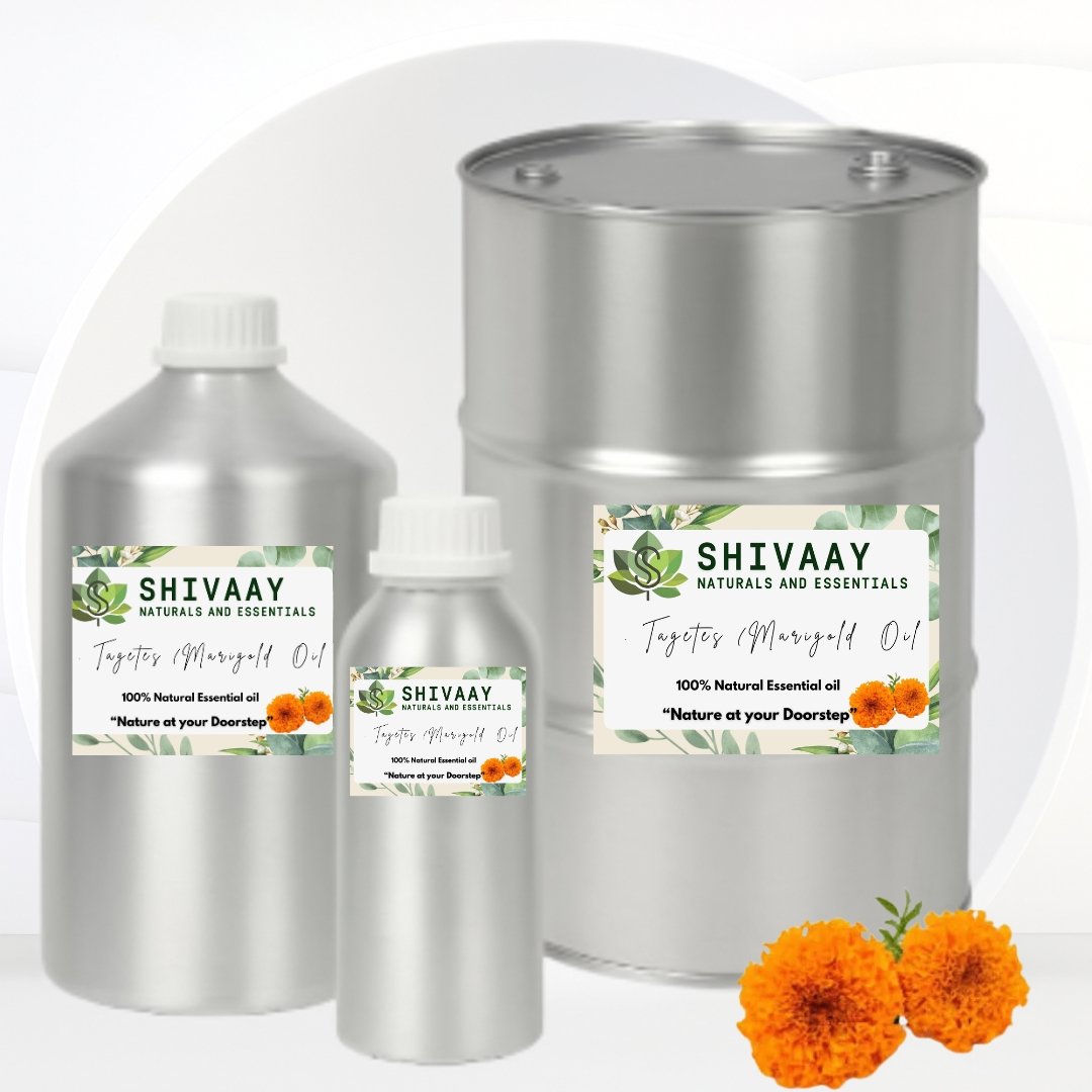 Shivaay Natural & Essential offers high-quality Tagetes Oil (Marigold Oil) for bulk supply, wholesale distribution, and export. Extracted through steam distillation from fresh flowers and aerial parts of Tagetes minuta, our oil is 100% pure, natural, and free from synthetic additives.